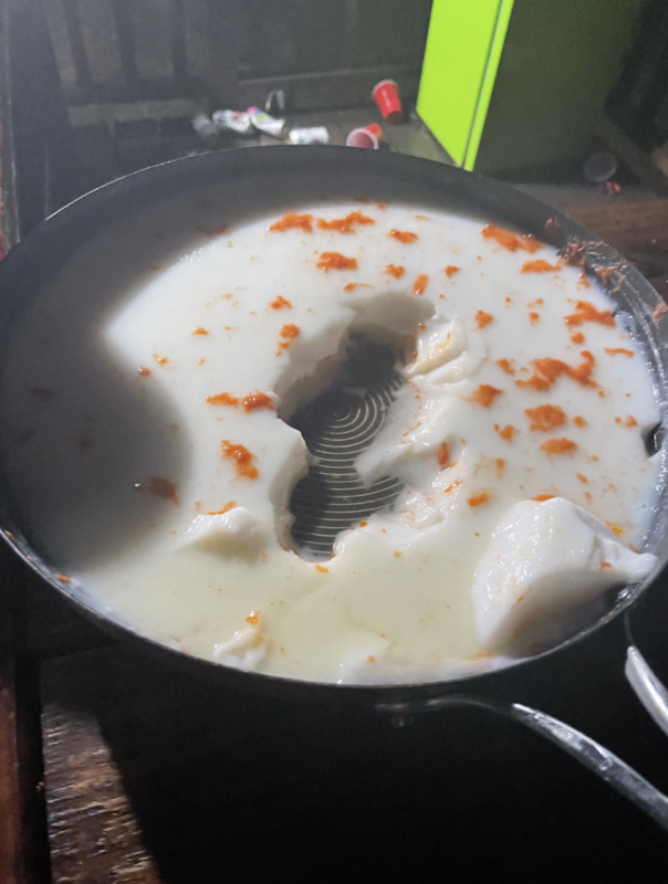 Prior to The Incident, our team was initially tasked with researching Kappa Sigma’s cocaine allegations. It didn’t take long for us to realize that their coke consumption cannot be compared to that of other fraternities on this campus—it simply pales in comparison. They needed to stand out. Instead of white powder, what we found behind the wooden plank designated as the “bar area” was much more sinister: a skillet full of what we can only presume to be gelatinized cocaine (or some combination of congealed body fluids and animal fat. Who can say?) When asked about the contents of said skillet and its intended purpose, the brothers promptly chucked it into the woods. Maybe coke jello was a PR stunt, maybe it was a future torture method: the world will never know, because that is when the sky began to fall.