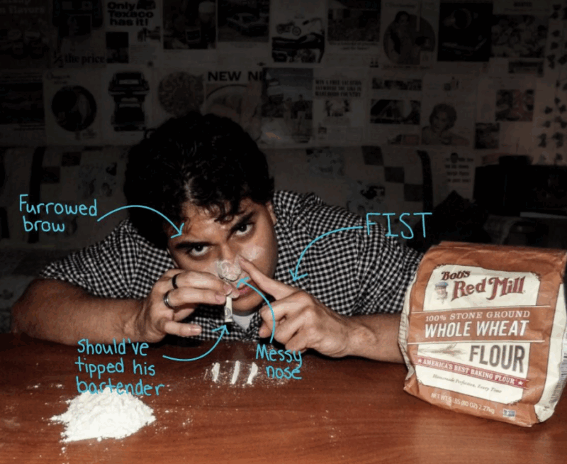 Pinky out adds a zesty yet sophisticated flair to your coke usage. With this technique, you will transform into Queen Elizabeth sipping tea right in front of the frat boy’s’ eyes. It’s powerful symbolism. But make sure that your pinky stands with pride, because no one likes a flaccid pinky. Feel free to add an eyebrow raise and a pursed lip for a little extra sass.